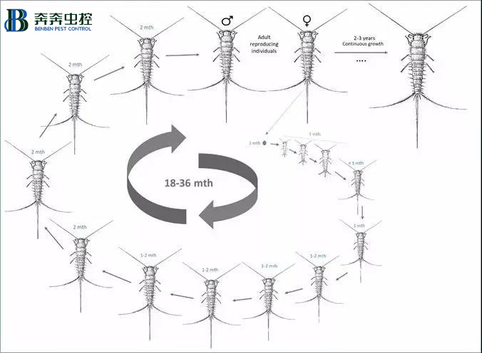 2.衣魚從幼蟲到成蟲約需4~6個(gè)月,衣魚的發(fā)育為半變態(tài),幼蟲到成蟲要蛻皮8次,成蟲期也仍會(huì)脫皮,壽命可長(zhǎng)達(dá)2~8年。