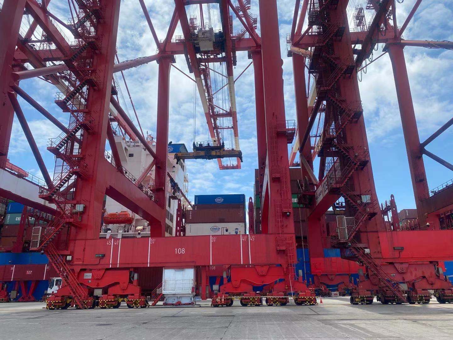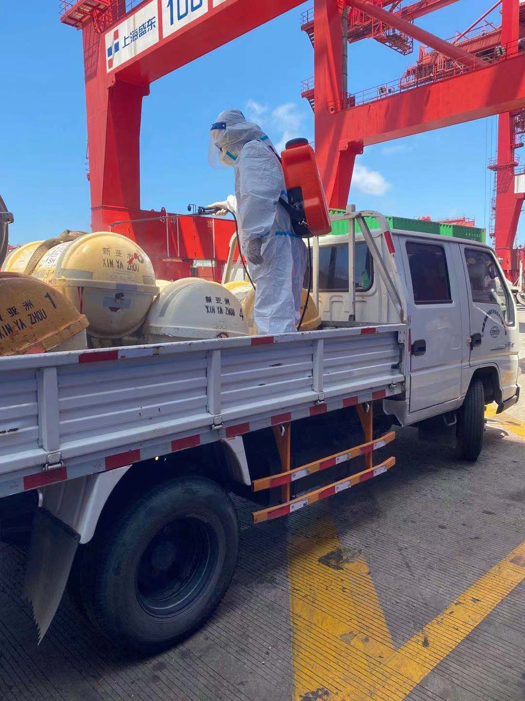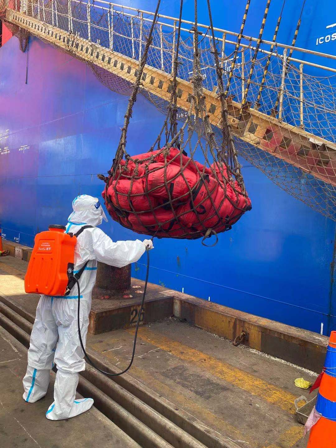 洋山深水港碼頭一萬八千箱裝特大號貨輪救生設(shè)備回檢消毒施工