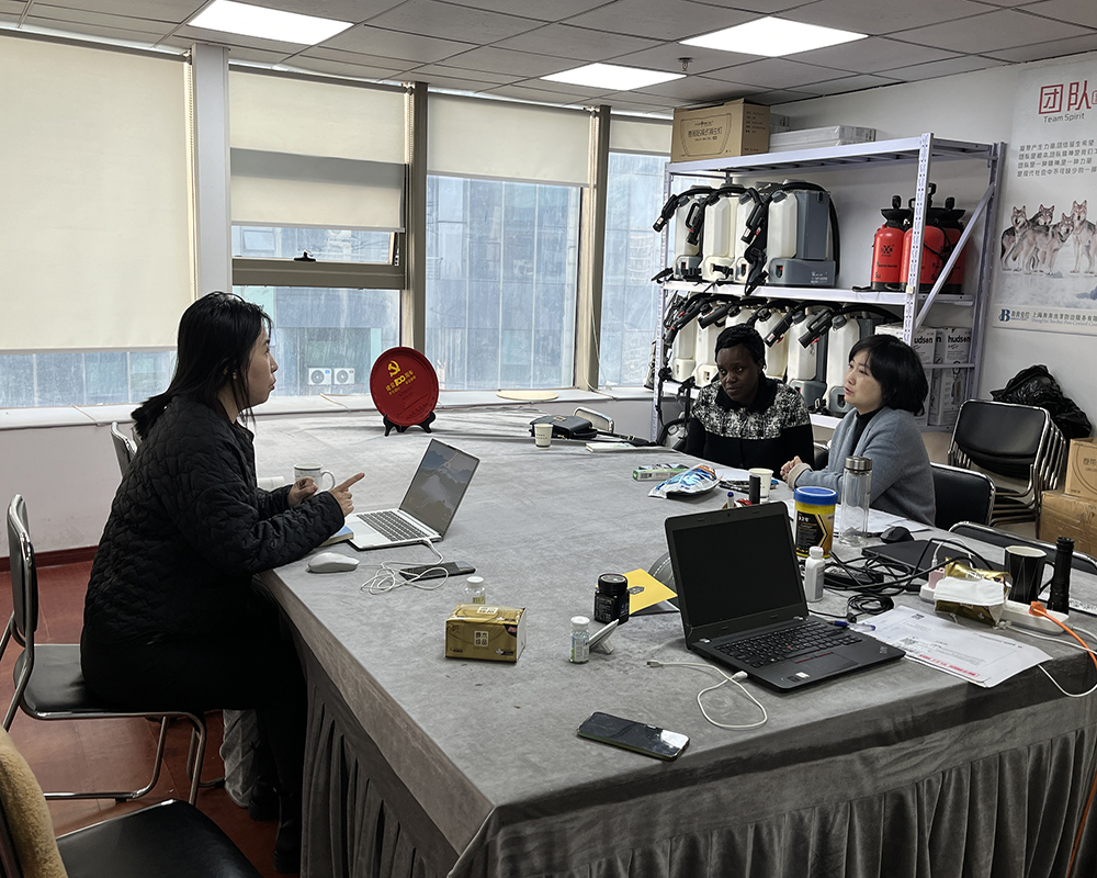 在會(huì)議中鄒總和Mr Su介紹了我們的蟲害作業(yè)人員是如何防治蚊蠅的,也向他們介紹了我們作業(yè)的器械。