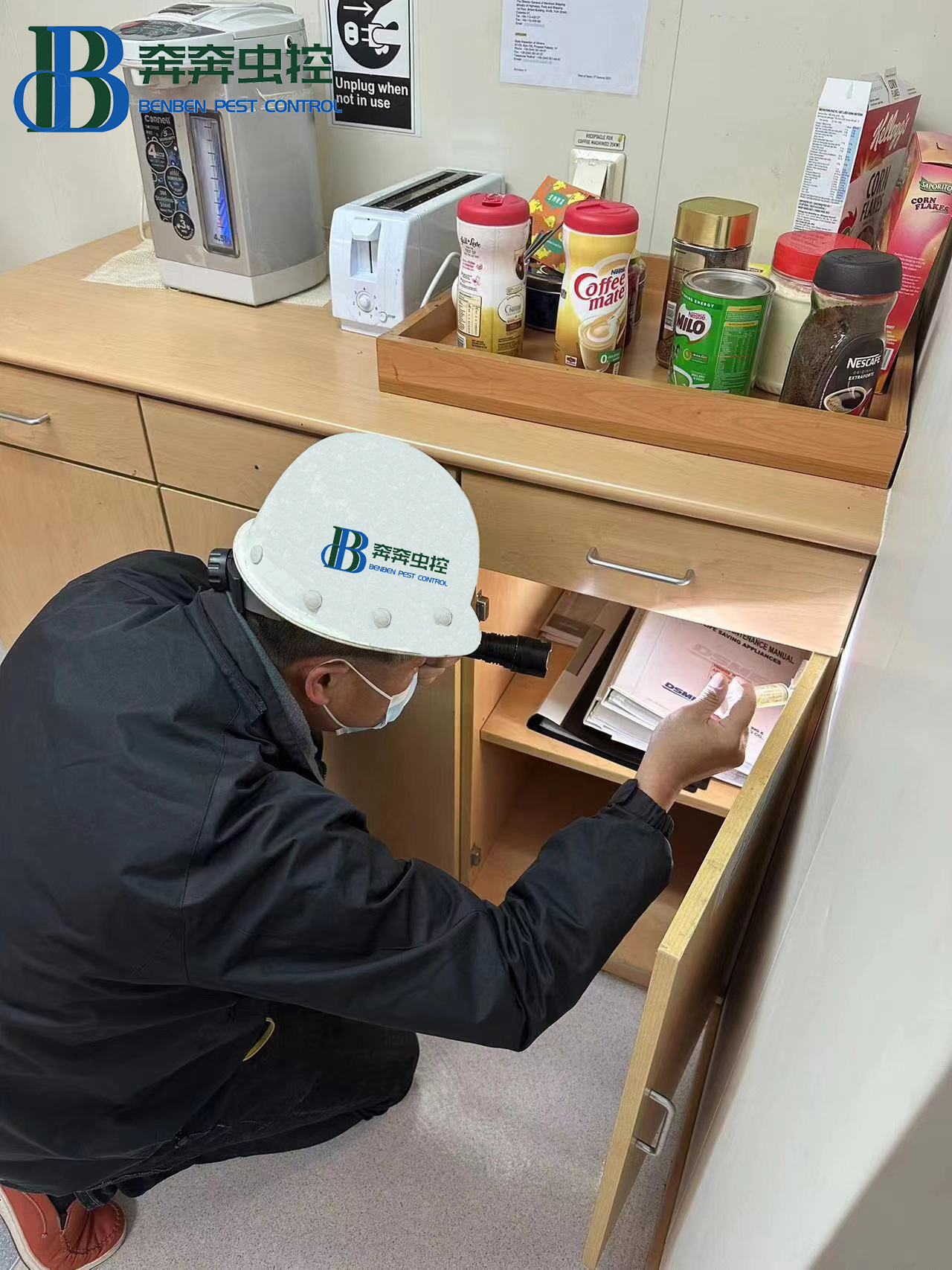 我們首先從蟑螂危害最嚴(yán)重的后廚操作間開始滅蟑螂,主要的布藥點(diǎn)有:灶爐周圍、冰箱底座、櫥柜內(nèi)部、后櫥柜子內(nèi)部、糧食和食品庫及碗筷櫥柜內(nèi)部的角落和縫隙處等。